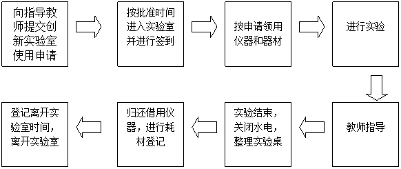 l 试验结束,应将实验装置整理收拾好,交给有关人员验收;未经许可,不准带其他非核准资格的人员进入实验室,如发现并不听劝阻的将取消其进入创新实验室的资格;